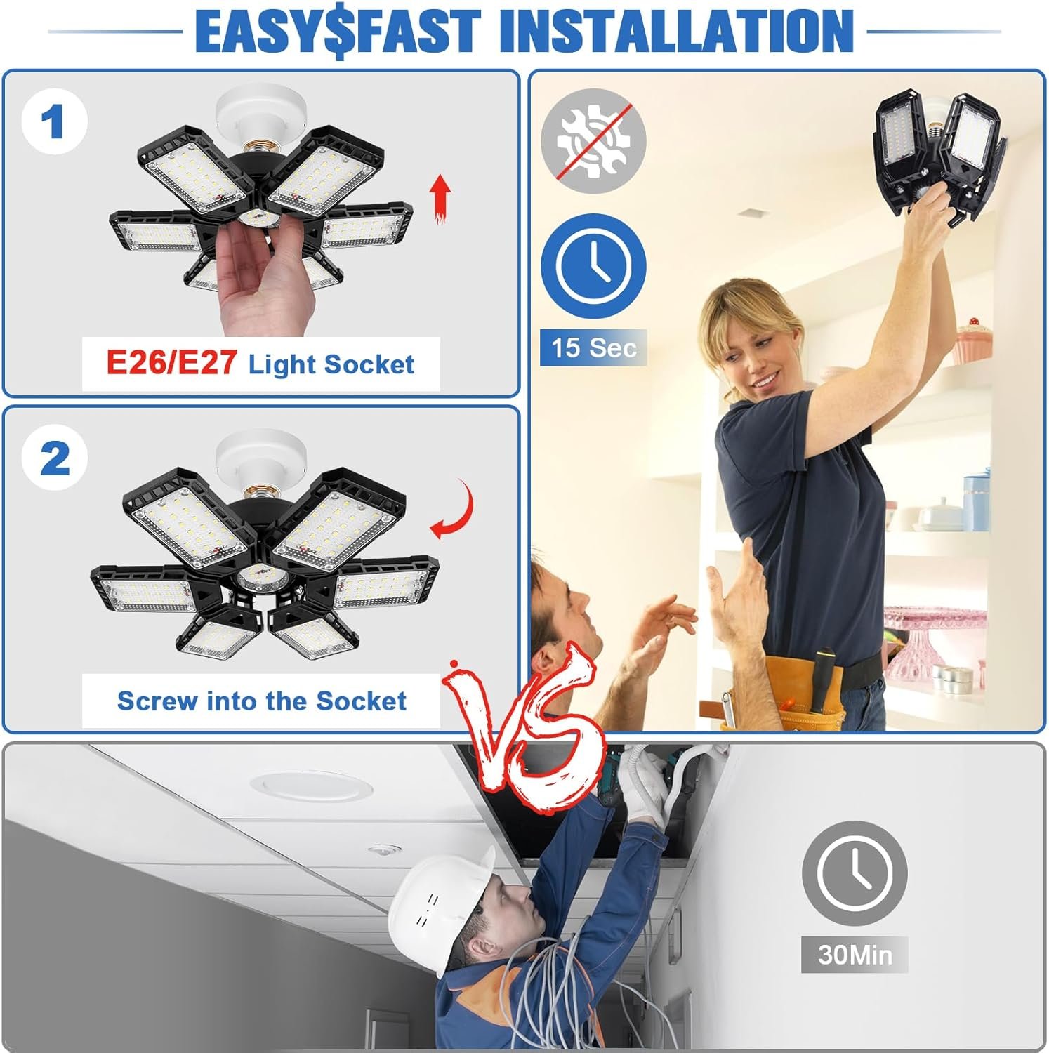 Transform your indoor lighting with this powerful LED Garage Light featuring 6+1 adjustable panels for complete brightness coverage. Designed to eliminate dark spots, this innovative lighting solution delivers 360° illumination, making it perfect for garages, workshops, basements, and large indoor areas.